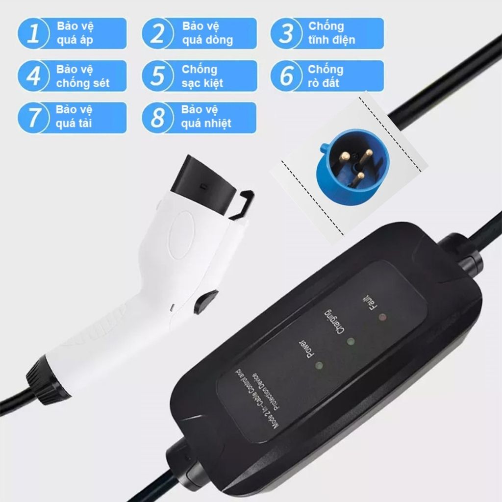 | Công suất tối đa | : 7kw | Dòng sạc | : 8A 10A 13A 16A 32A | |