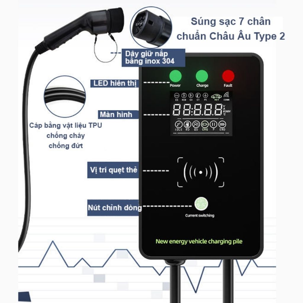 | Kiểu súng sạc | : IEC62196-2 Type 2 | Chất liệu súng | : PC9330 | |